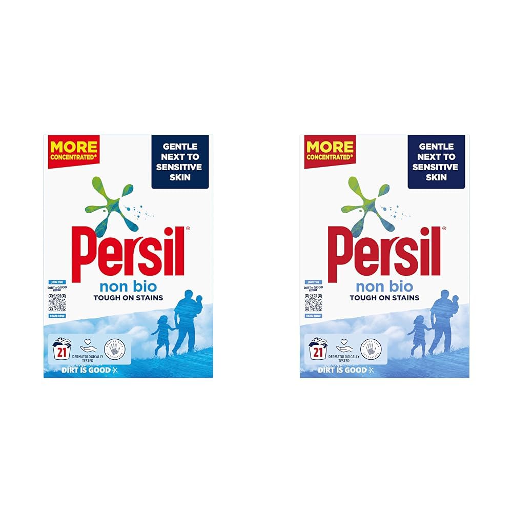 Persil doesn't test on animals. For the last 10 years, we have been using science, not animals, to ensure our non bio washing powder and all of our other products are safe for people and the planet. Persil Non Bio Washing Powder gives effective stain removal on every wash, even on a 30 degree cold wash. Our washing powder is now more concentrated. Our smaller 50 g* dose provides an incredible clean while using less packaging and needing fewer trucks on the road. This laundry detergent is made with biodegradable ingredients and the pack is 100% recyclable – tough on stains, kinder to our planet. Our washing powder is dermatologically tested and Persil's research into skin care is recognised by the British Skin Foundation? – so you can be reassured it will be suitable for sensitive skin. Persil Non Bio Washing Powder 21 Wash is tough on stains while being gentle next to sensitive skin and your clothes. The information below applies to each unit in the pack.