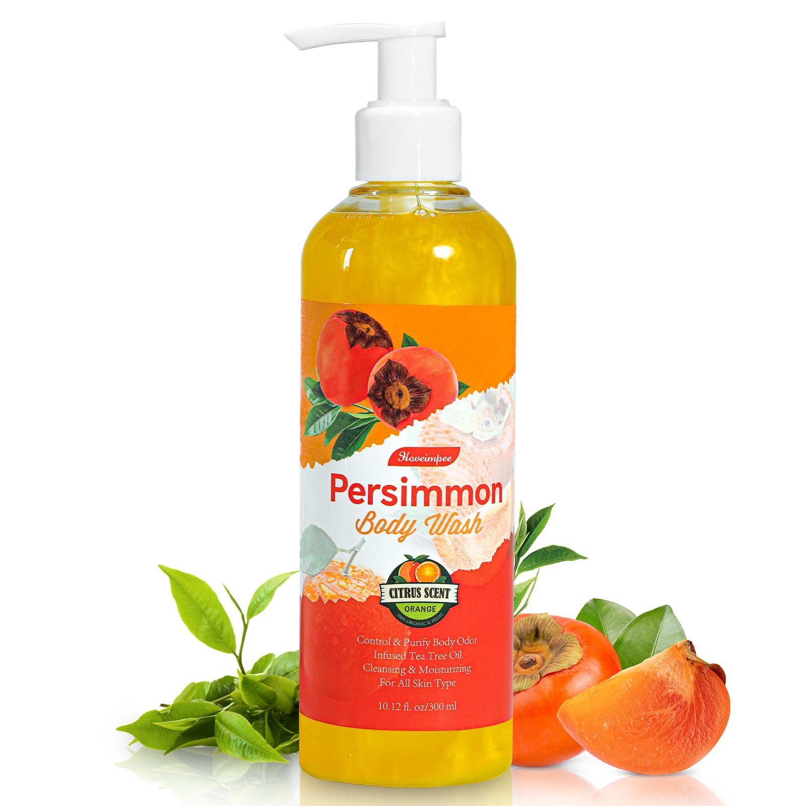 Creulty free, paraben free, sodium free, sulfate free, no phthalates. Natural Formula: Persimmon extract, tea tree oil, shea butter, vitamin e, all natural ingredients without paraben, leaves gentle refreshing subtle scent, suitable for various skin. Persimmon Soap for Old People Smell: Hoveimpee persimmon body wash contains persimmon tannin property that can effectively eliminate old people nonenal which cause aging smell. Persimmon with Tea Tree Oil and mositurizers: Persimmon extract and tannin can deodorize strong smell while tea tree oil balance oil production. This deodorant soap also infused in rich moisturizing ingredients, like shea butter and vitamin e, leaves your skin with moisture. Body Deodorant: This persimmon soap body wash infused rich persimmon extract and tannin that well control body odor both for women and men who have strong odor problem and those who always work out and sweat.