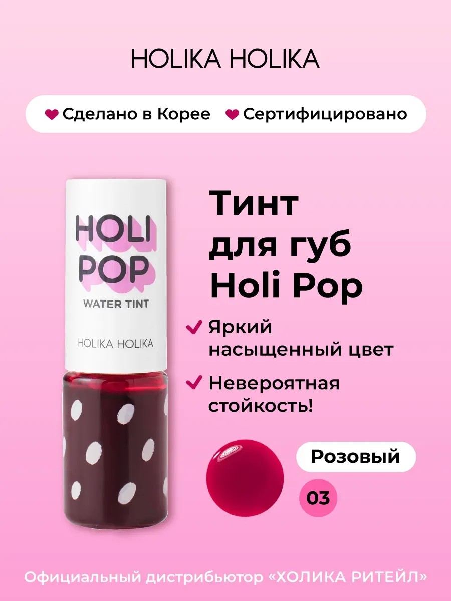 Стойкий корейский тинт для губ 03 розовый Holi Pop 9 мл