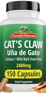 Cat's Claw capsules, derived from the bark of the Uncaria tomentosa vine native to the Amazon rainforest, are renowned for their traditional use in supporting immune health and promoting overall wellness.