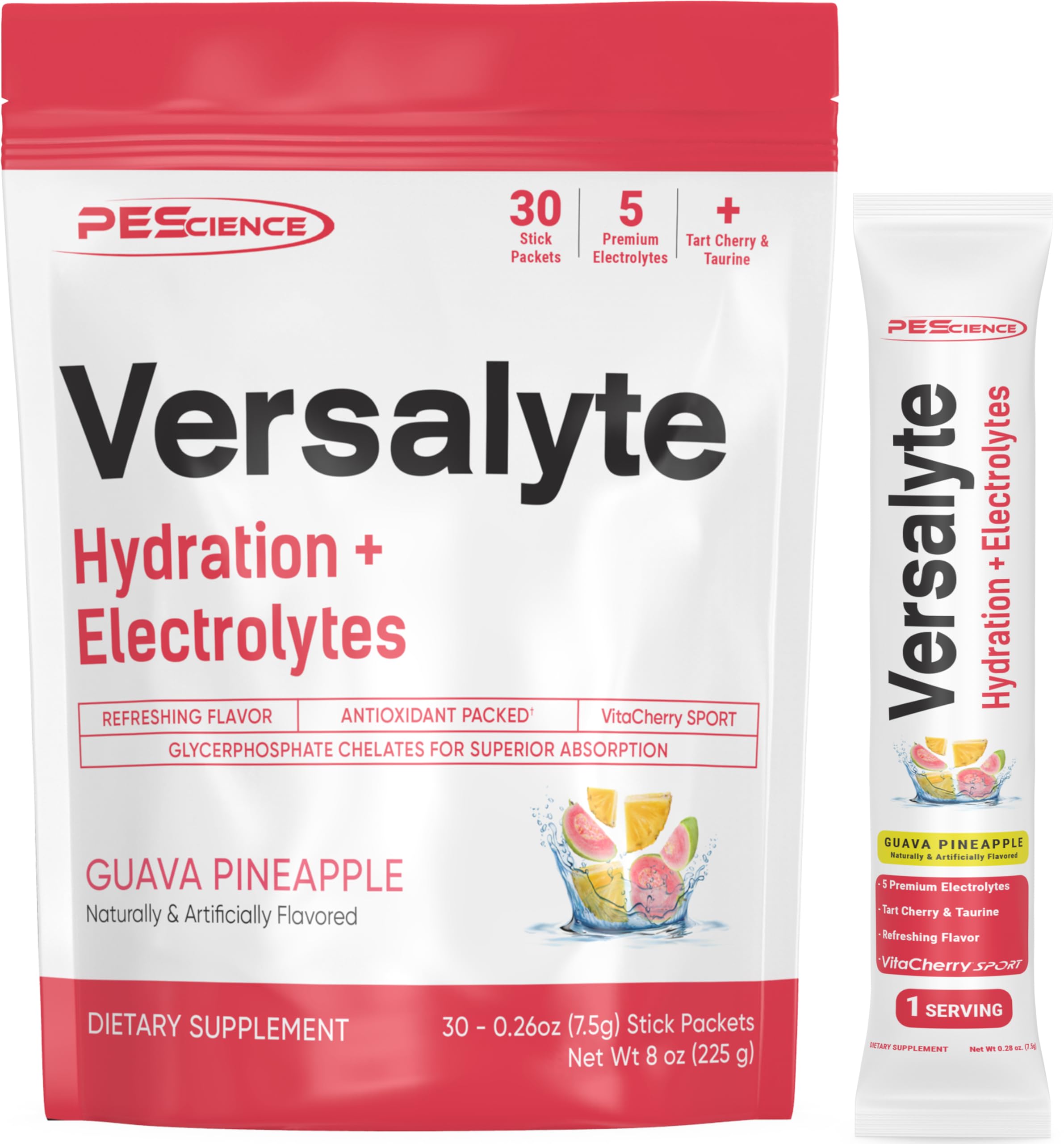 PEScience Versalyte Electrolyte Hydration Packets Sugar Free Electrolyte Powder with Magnesium Taurine Antioxidants Trace Minerals - Guava Pineapple 30 Servings