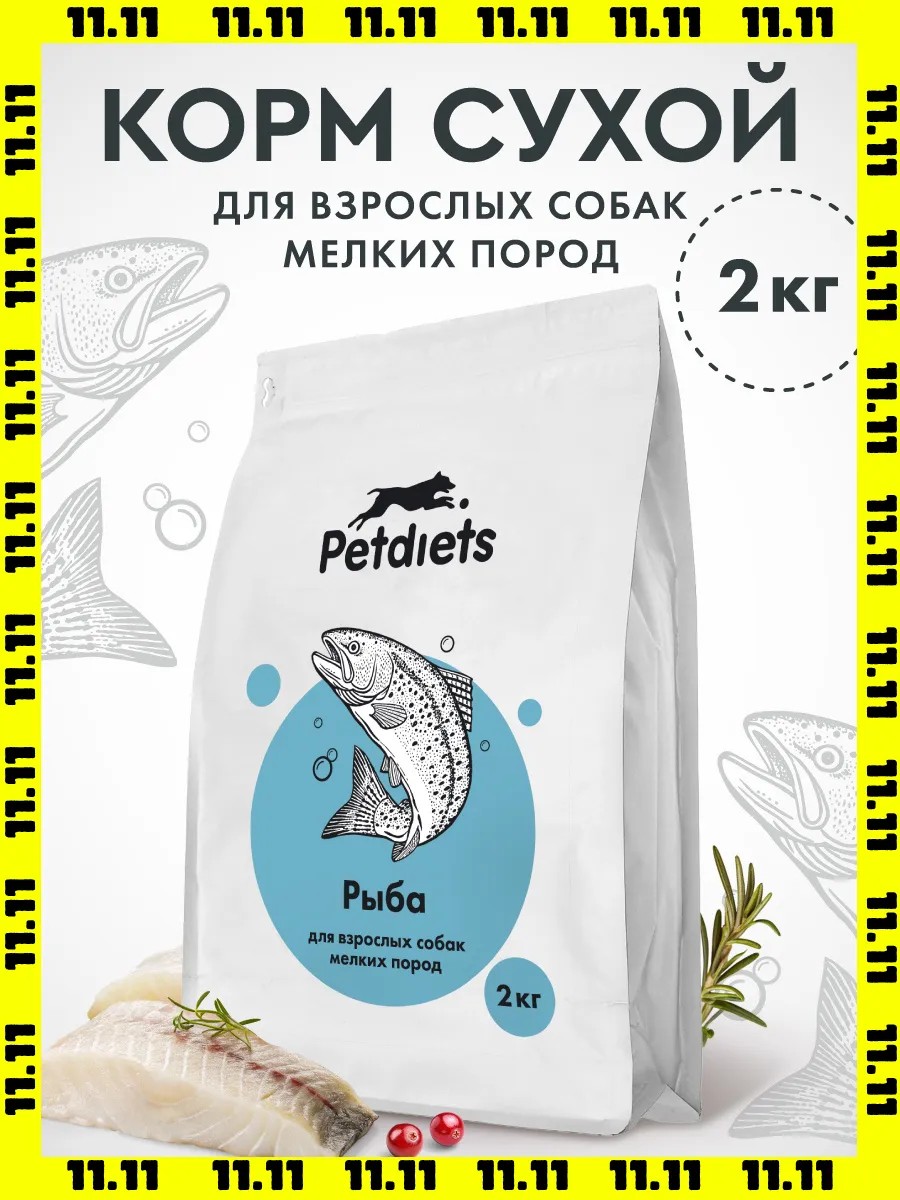 Корм сухой "Petdiets" (Петдаетс) для собак мелких пород, рыба, 2кг