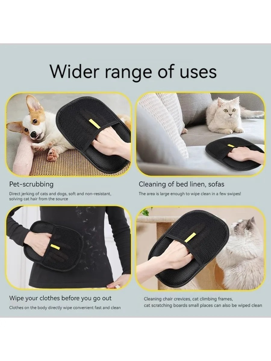 1.Dual-Sided Design: Featuring pet hair remover gloves, this grooming tool efficiently captures loose fur on both sides, enhancing overall cleanliness.