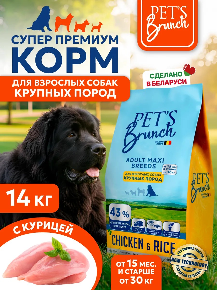 Сухой корм для взрослых собак крупных пород PET`S BRUNCH. Это продукт супер премиум класса, разработанный с использованием холистик подхода. Корм обладает отличным вкусом и ароматом, что делает его любимым лакомством для собак. Сухой корм разработан с учетом всех потребностей больших собак, включая кастрированных и стерилизованных собак. Рацион содержит оптимальное соотношение протеинов и углеводов, а также необходимое количество аминокислот, витаминов и минералов. Комплекс хондропротекторов помогает справиться с дополнительной нагрузкой на суставы, испытываемой собакой крупной породы. Собачий корм обогащён антиоксидантами для поддержки иммунной системы и пребиотиками для здорового пищеварения. В состав корма входят натуральные ингредиенты, которые легко усваиваются и помогают поддерживать здоровье вашей собаки. Сухой корм PET`S BRUNCH это не только еда для собак, но и забота о вашем питомце. Он изготовлен из мяса, не содержит искусственных красителей и ароматизаторов, что гарантирует безопасность и здоровье вашего четвероногого друга. Сбалансированный состав корма обеспечит полноценное питание и заряд энергии для активных и игривых питомцев. Выбирайте правильное питание, чтобы заботиться о здоровье своего любимца! Сухой корм PET`S BRUNCH - это лучший выбор для вашей собаки.