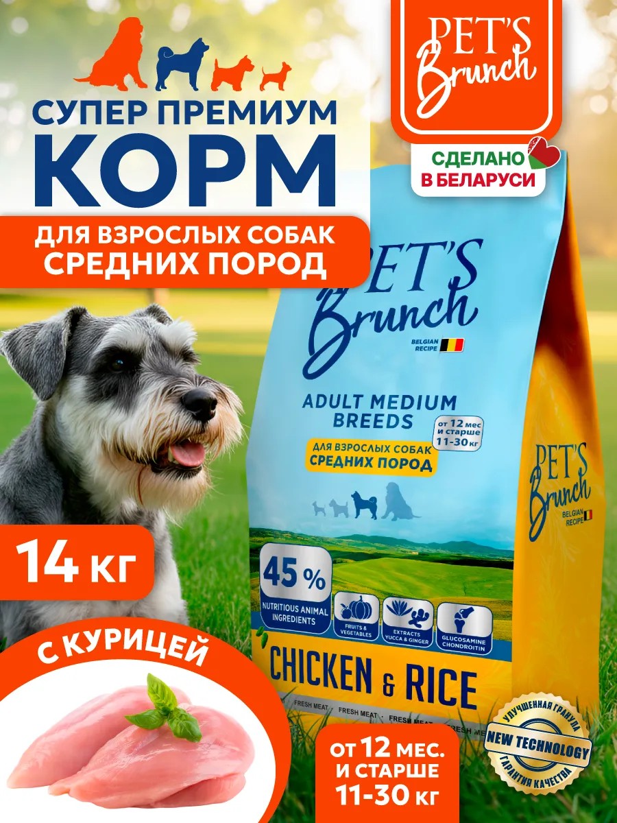 PET’S BRUNCH Сухой корм для собак средних пород с курицей 14кг