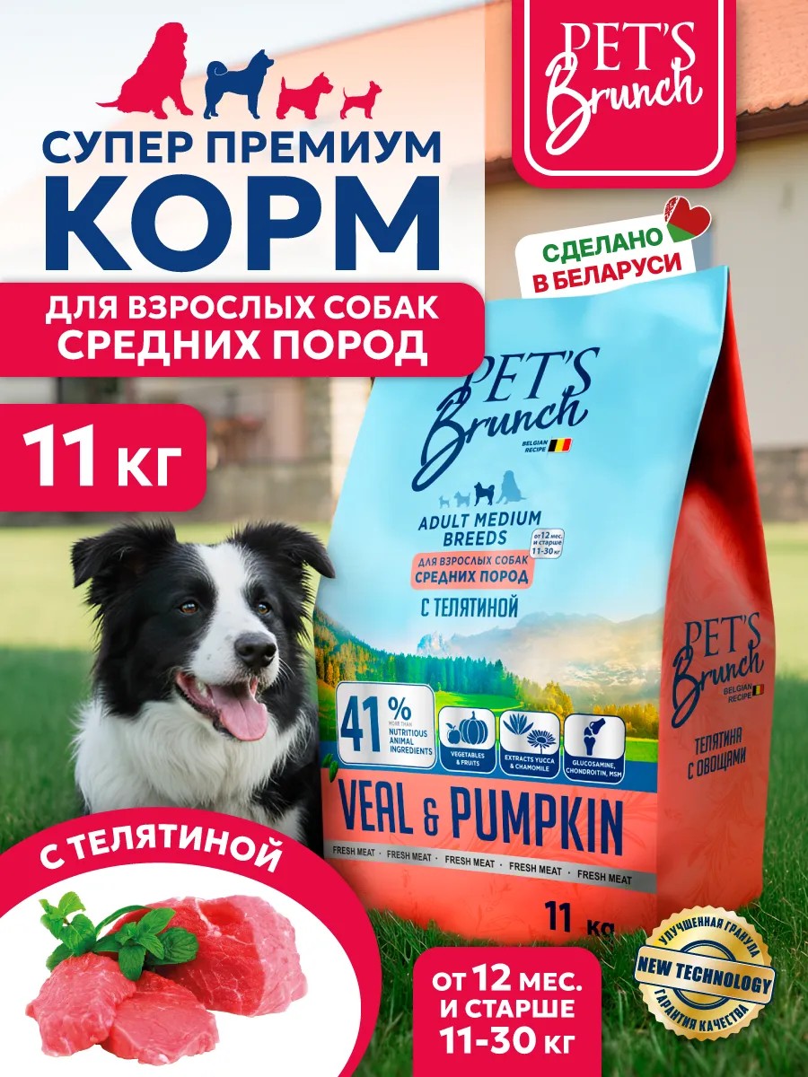 Сухой корм для собак средних пород с телятиной PET`S BRUNCH. Это продукт супер премиум класса, разработанный с использованием холистик подхода. Корм обладает отличным вкусом и ароматом, что делает его любимым лакомством для собак. Сухой корм разработан с учетом всех потребностей собак. Его можно использовать, в том числе, для кастрированных и стерилизованных собак. В состав корма входят натуральные ингредиенты, которые легко усваиваются и помогают поддерживать здоровье вашей собаки. Благодаря сбалансированному составу, ваш питомец получит необходимое количество белков, жиров и углеводов для роста и активности. Собачий корм содержит витамины и минералы, способствующие укреплению иммунной системы и поддержанию хорошего состояния кожи и шерсти. Сухой корм PET`S BRUNCH не только еда для собак, но и забота о вашем питомце. Он изготовлен из мяса, не содержит искусственных красителей и ароматизаторов, что гарантирует безопасность и здоровье вашего четвероногого друга. Сбалансированный состав корма обеспечит полноценное питание и заряд энергии для активных и игривых питомцев. Выбирайте правильное питание, чтобы заботиться о здоровье своего любимца! Сухой корм PET`S BRUNCH - это лучший выбор для вашей собаки.