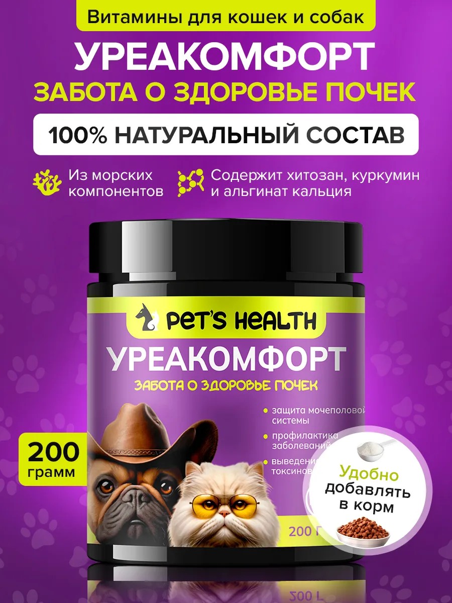 Кормовая добавка для кошек и собак – комплексное средство на основе натуральных ингредиентов для поддержания здоровья мочевыделительной системы и почек. Формула с хитозаном, куркумином и альгинатом кальция способствует очищению организма, снижению уровня токсинов в крови и защите от инфекций.
