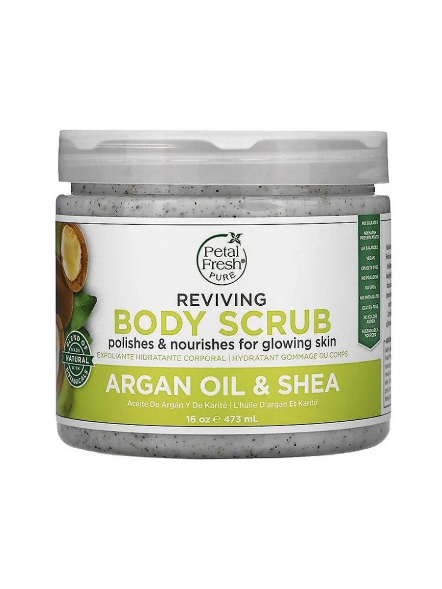 Exfoliate and revitalize your skin with the Petal Fresh Pure Argan & Shea Butter Body Scrub.