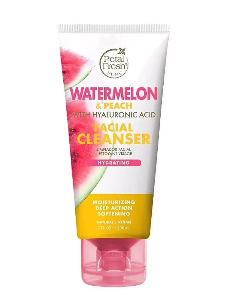 PETAL FRESH Moisturizing Facial Cleanser with Watermelon and Peach Extract, 200 ml. Petal Fresh Pure cleanser with watermelon and peach extract is infused with natural and key ingredients that gently cleanse and hydrate skin. The powerful combination of watermelon, hyaluronic acid, and peach extract deeply cleanses pores, removing sebum, impurities, and makeup without overdrying. Skin will feel clean, soft, and hydrated. Use daily, morning and evening. Free from preservatives, parabens, and GMOs. Vegan and cruelty-free. Directions: Apply a small amount to damp skin and gently massage in circular motions, avoiding contact with eyes. Rinse thoroughly and pat dry. Ingredients: Hyaluronic Acid, Vitamin C, Glycerin, Plant Extract. For all skin types.