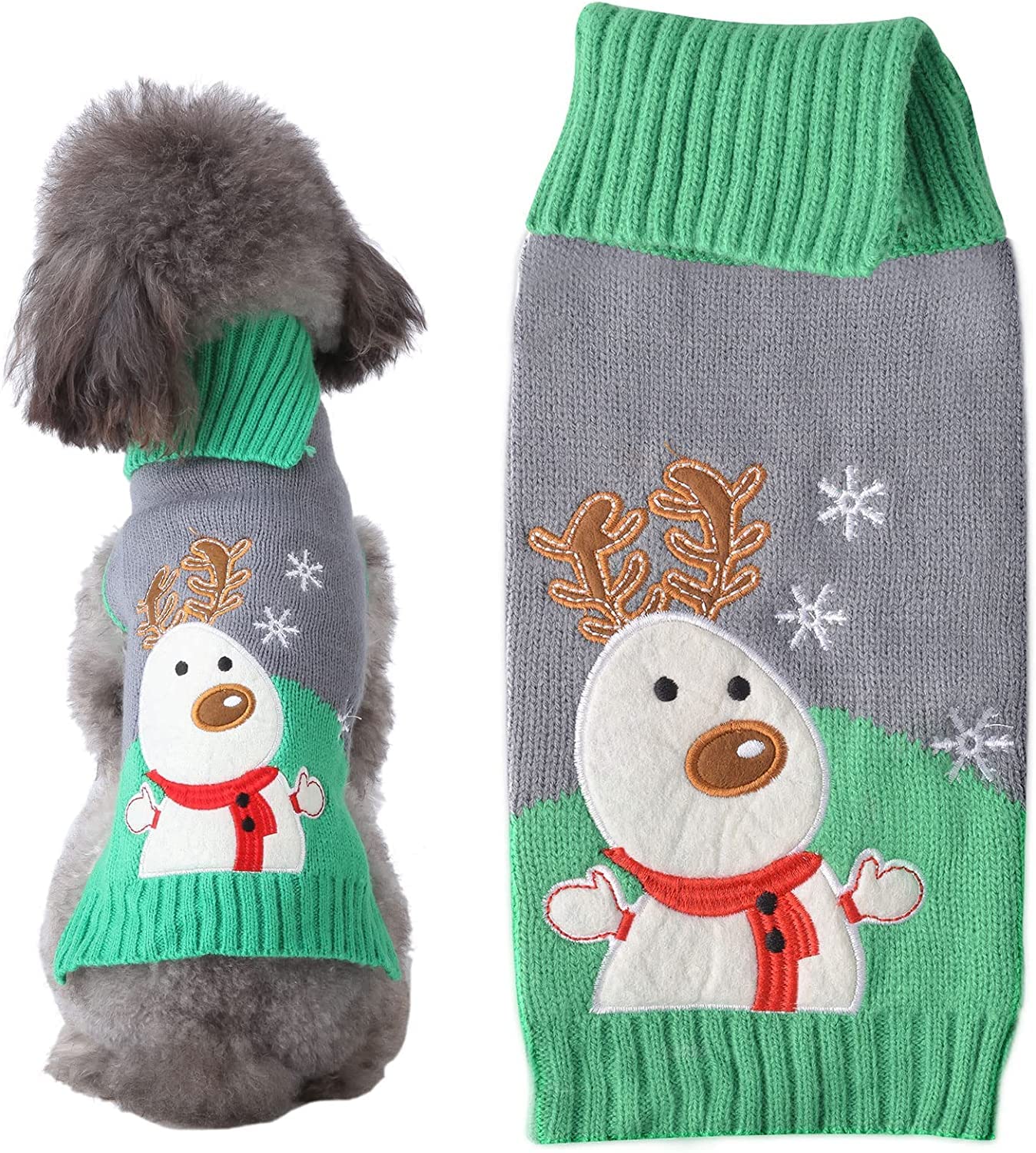 Petcare dog sweater Christmas dog turtleneck sweater Christmas pattern knitwear warm pet sweater for dog puppies party Puppy gift for dog gray -green moose XL XL