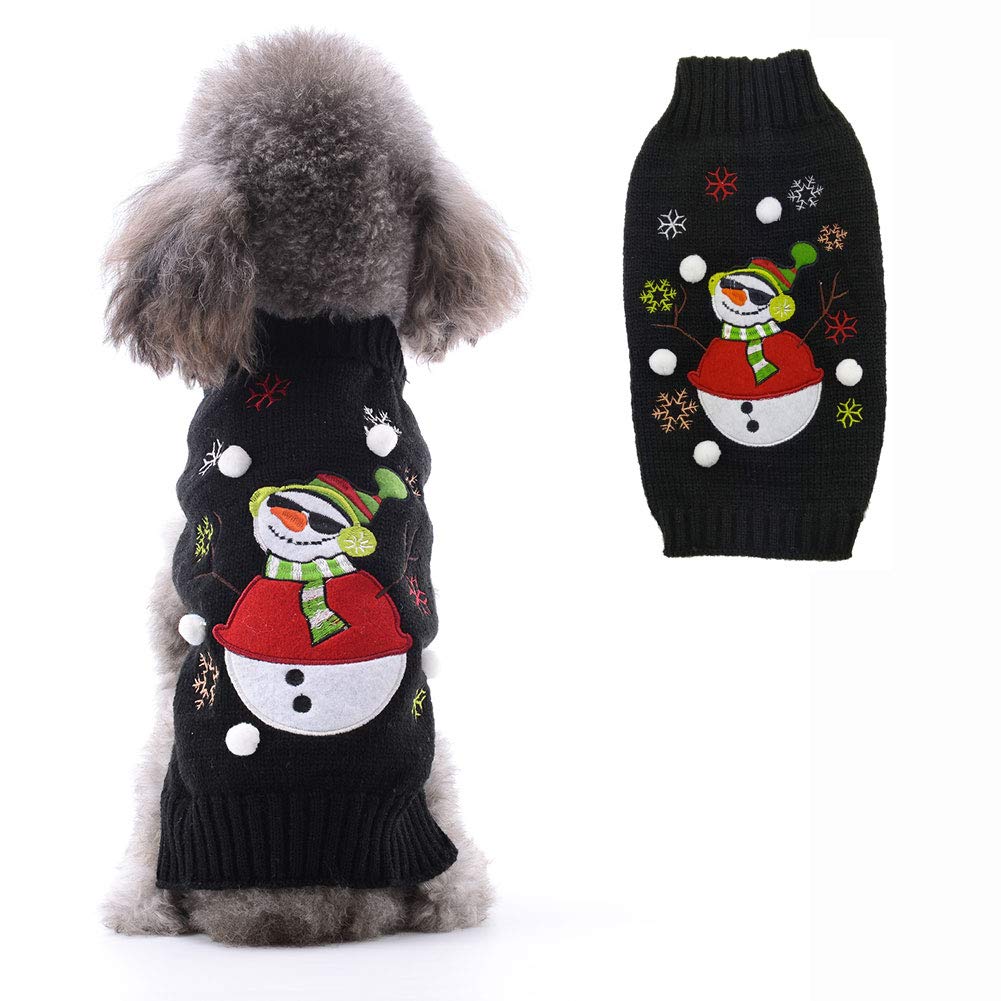 Petcare dog sweater Christmas dog turtleneck sweater Christmas pattern knitwear warm pet sweater for dog puppies party puppy gift for dog white ball snowman l