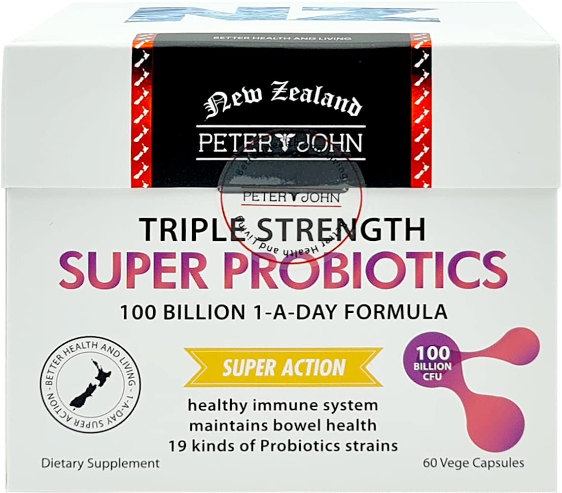No added yeast, gluten, wheat, egg, dairy, soy, artificial colors, preservatives, flavours and sweeteners. Digestive Immune Support Maintains bowel Health. Probiotics are live bacteria and yeasts that are good for your health, especially your digestive system. We usually think of these as germs that cause diseases. But your body is full of bacteria, both good and bad. Probiotics are often called "good" or "helpful" bacteria because they help keep your gut healthy. 100 BILLION CFU, 19 Kinds of Probiotics Strains Enteric Coated Capsule. [PETER JOHN SUPER PROBIOTICS 100 BILLION 1-A-DAY FORMULA] is a premium probiotic formula containing 19 strains of beneficial bacteria to help support a healthy microbiome and general wellbeing. Containing Lactobacillus acidophilus and Bifidobacterium animalis this formula provides probiotics known to help support digestion and the absorption of nutrients, as well as providing support for the health and function of the immune system.