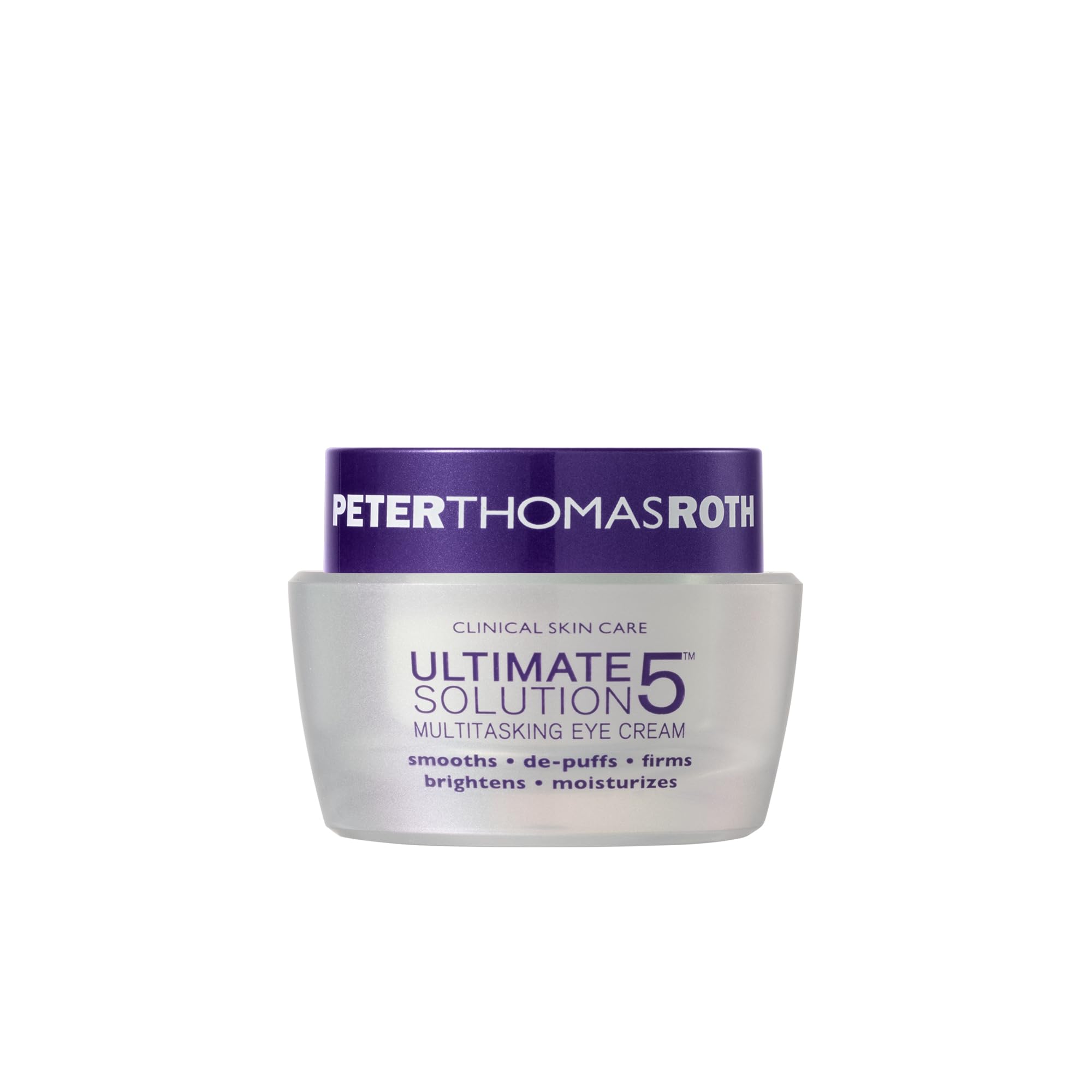 : This luxurious eye cream combines five skincare benefits in one formula and helps visibly improve wrinkles, puffiness, dark circles, dryness, and loss of firmness. With peptides, vitamin C, niacinamide, and gentle fruit acids, skin is smoothed and brightened, while hyaluronic acid, ceramides, and caffeine intensely hydrate, leaving the eye area plumper and refreshed. After 4 weeks, skin is smoother, firmer, and visibly refreshed. The gentle formula is ideal for daily use and allows for even makeup application. Based on a 4-week usage study. Safety Warning: For external use only.Hyaluronic acid and ceramide: intensely hydrate, plump the skin, and give the eye contour a youthful radiance. Vitamin C and niacinamide: brighten dark circles and improve skin tone, while gentle acids smooth imperfections. Innovative peptides: support skin firmness and reduce the appearance of deep and fine lines. Visible results: after 4 weeks, the eye contour is smoother, firmer, more relaxed, brighter, and intensely hydrated . 5-in-1 eye care: a rich and luxurious eye cream with five targeted solutions – for wrinkles, puffiness, loss of firmness, dark circles, and dryness.Description du produit Cette crème contour des yeux de luxe combine cinq effets de soin dans une formule et aide à améliorer visiblement les rides, les gonflements, les cernes, la sécheresse et la perte de fermeté. Avec des peptides, de la vitamine C, de la niacinamide et des acides de fruits doux, la peau est lissée et éclaircie tandis que l'acide hyaluronique, les céramides et la caféine hydratent intensément et rendent le contour des yeux plus rebondi et plus frais. Après 4 semaines, la peau est plus lisse, plus ferme et visiblement rafraîchie. La formule douce est idéale pour une utilisation quotidienne et permet une application uniforme du maquillage. Basé sur une étude d'utilisation de 4 semaines. Avertissement De Sûreté Pour un usage externe uniquement.Acide hyaluronique et ceramide : hydratent intensément, repulpent la peau et font briller le contour des yeux jeune. Vitamine C et niacinamide : éclaircit les cernes et améliore le teint de la peau, tandis que les acides doux lissent les irrégularités. PEPTIDES INNOVANTS : soutiennent la fermeté de la peau et réduisent l'apparence des rides profondes et des rides fines. Résultats visibles : après 4 semaines, le contour des yeux est plus lisse, plus ferme, soulagé, plus lumineux et intensément hydraté . Soin des yeux 5 en 1 : crème riche et luxueuse pour les yeux avec cinq solutions ciblées – contre les rides, les gonflements, la perte de fermeté, les cernes et la sécheresse.Peter Thomas Roth Ultimate Solution 5 Crème contour des yeux multitâche 15 ml – Crème luxueuse pour les yeux contre les rides, les gonflements, les cernes, la sécheresse et la perte de fermeté