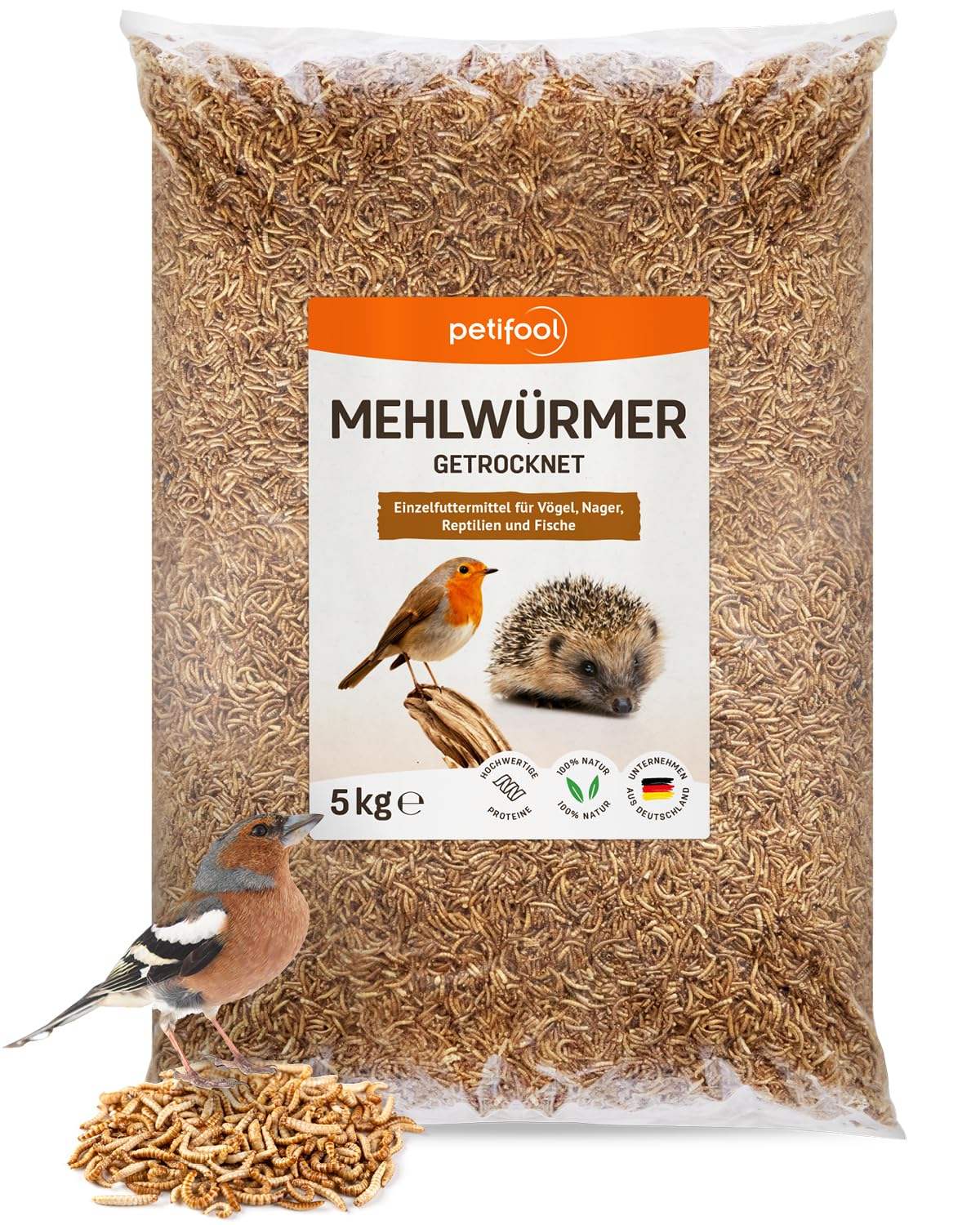 Petifool petifool mealworms dried 5kg - insect snack for birds rodents fish turtles and reptiles - high -quality natural product - protein -rich snack for wild birds 5 kg (1 Pack)