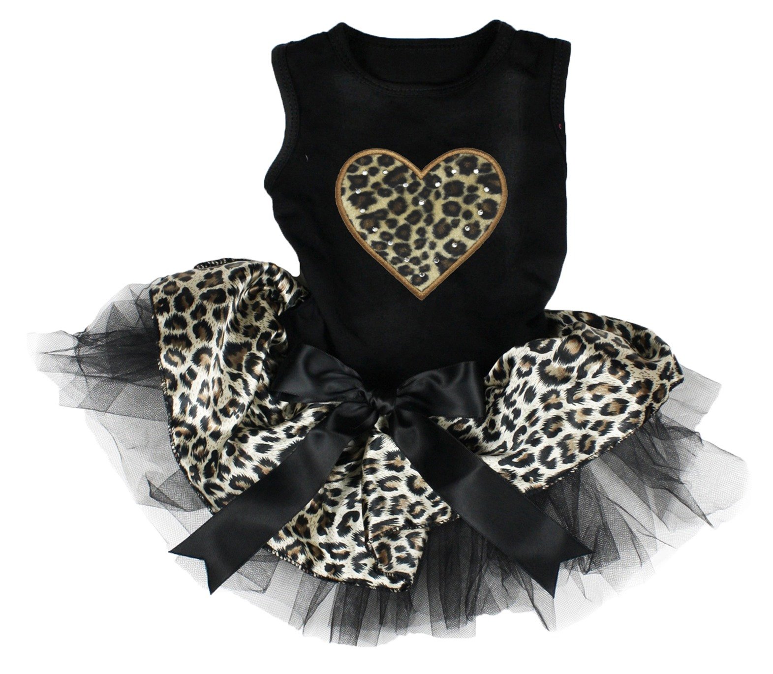 Petitebella Leopard Heart Puppy Dog Dress (Black/Leopard, X-Large) Black/Leopard X-Large