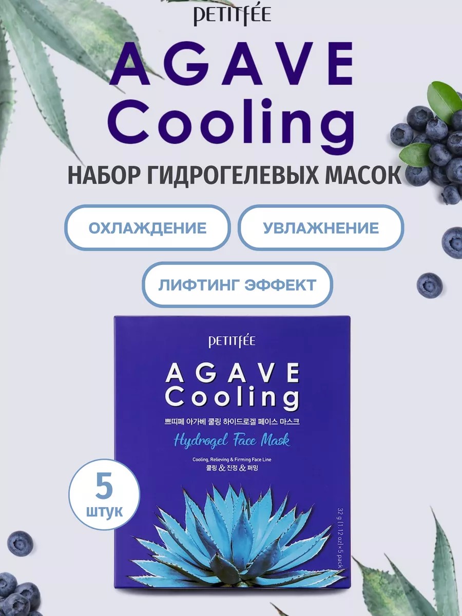 Охлаждающая гидрогелевая маска с экстрактом агавы Petitfee Agave Cooling Hydrogel Face Mask направлена на глубокое увлажнение кожи, повышает эластичность и подтягивает овал лица, а также обладает успокаивающим действием.