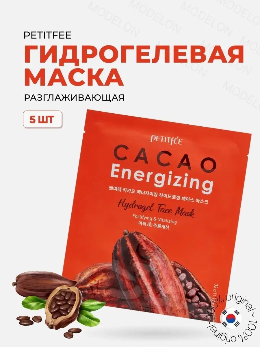 Petitfee Набор гидрогелевых масок для ухода за лицом Какао 5шт
