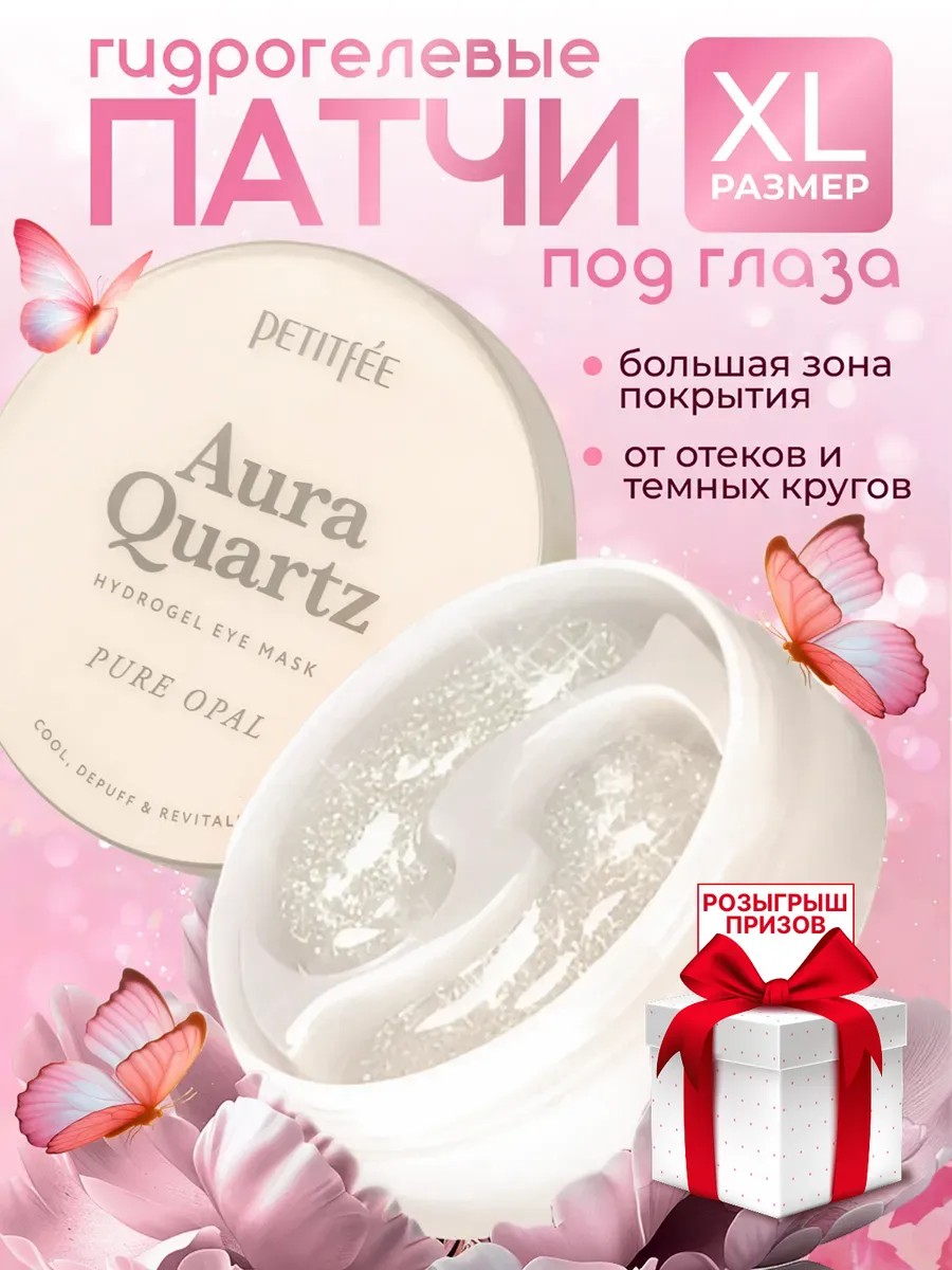 Охлаждающие гидрогелевые патчи для области вокруг глаз с жемчужной пудрой 40шт PETITFEE Aura Quartz Hydrogel Eye Mask Pure Opal 40pcs. Охлаждающие гидрогелевые патчи для области вокруг глаз с жемчужной пудрой освежают, тонизируют, устраняют следы усталости.