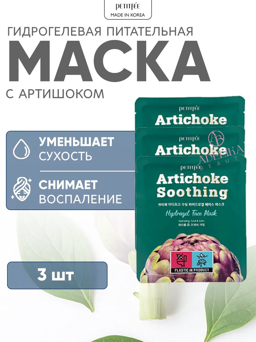 | Комплектация | Artichoke Soothing Hydrogel Face Mask гидрогелевая маска для лица с экстрактом артишока 32мл - 3шт |