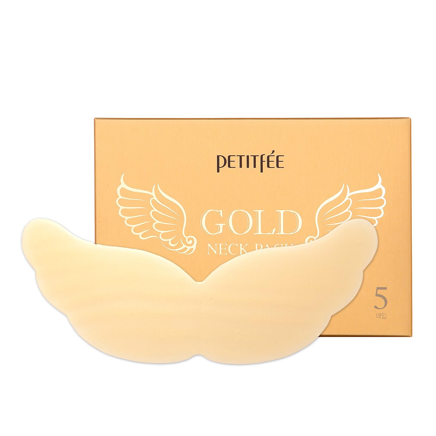 Petitfee Gold Neck Pack 5ea - Hydrogel Mask for Firming & Silky Smooth Neck & Decollete Deep Moisturizing Care with 24K Gold Collagen Hyaluronic Acid Soothing & Cooling Hydrogel Mask