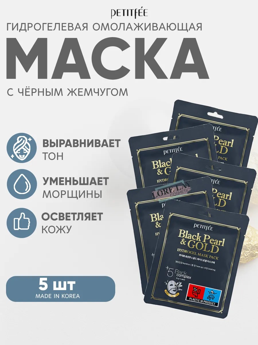 | Комплектация | Маска гидрогелевая с черным жемчугом и золотом Black Pearl and Gold Hydrogel Mask Pack 32гр -3 шт |