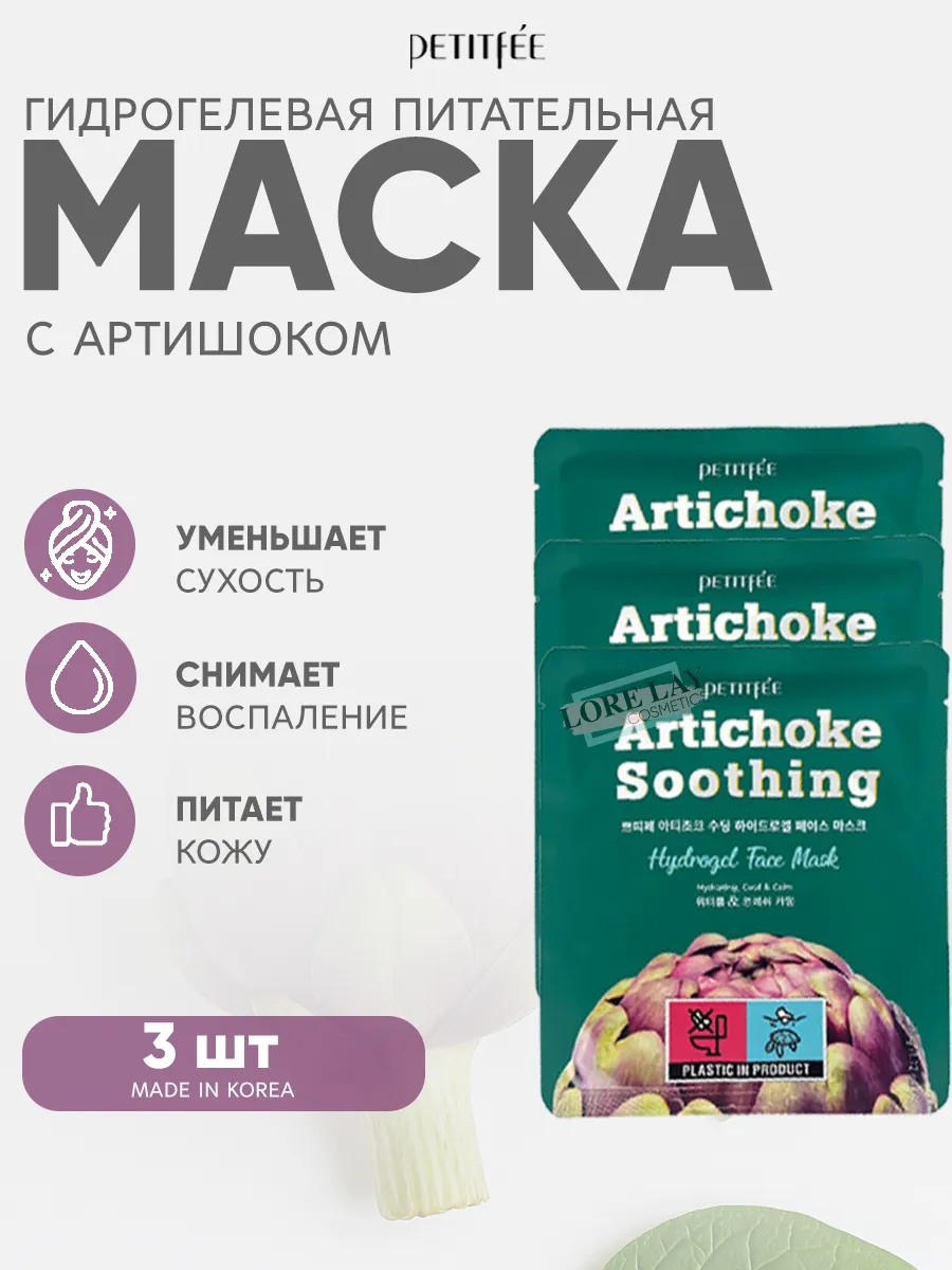 | Комплектация | Гидрогелевая для маска артишоком Petitfee Artichoke Soothing Hydrogel Face Mask 3шт |