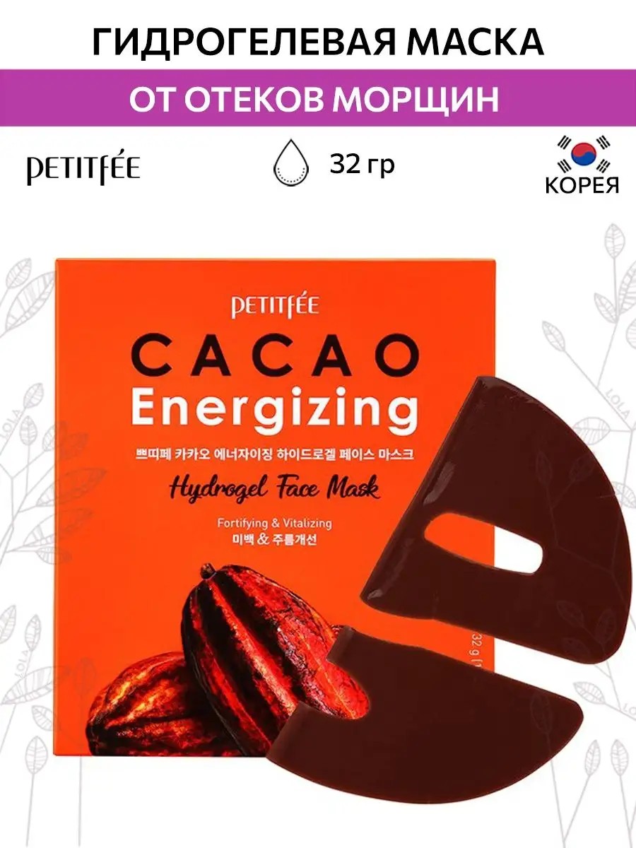 Корейская Маска для лица гидрогелевая КАКАО Petitfee Cacao Energizing Hydrogel Корея 1 шт. Тонизирующая гидрогелевая маска для лица с какао **Petitfee Cacao Energizing Hydrogel Face Mask** оказывает противоотёчное действие, улучшает и освежает цвет лица, интенсивно увлажняет и замедляет процессы старения. Маска в считанные минуты устраняет сухость и следы усталости, тонизирует кожу и мягко осветляет. Гидрогелевая основа маски, обильно пропитанная активной эссенцией, плотно прилегает к коже и передаёт клеткам эпидермиса максимум полезных веществ. Для более ярко выраженного противоотёчного действия за 10-15 минут до использования маску рекомендуется положить в холодильник. **Основные действующие компоненты: Масло и экстракт какао** обладает сильной антиоксидантной активностью, препятствует появлению морщин, усиливает микроциркуляции и укрепляет сосуды, уменьшает отёчность и улучшает цвет лица. **Ниацинамид** способствует стимуляции синтеза коллагена и улучшению защитных функций кожи, помогает снизить трансэпидермальную потерю влаги из кожи и снизить пигментацию, смягчает, повышает эластичность кожи, увлажняет, сужает поры, успокаивает, эффективен при использовании для чувствительной кожи, оказывает согревающее действие и улучшает микроциркуляцию крови, осветляет. **Аденозин** \- компонент отвечающий за антивозрастной уход за кожей\, замедляет процесс увядания кожи\. **Экстракт бразильского ореха** интенсивно увлажняет и питает кожу, проникая в глубокие слои кожи, формирует на коже защитный барьер, предупреждающий преждевременную потерю влаги. **Экстракт кедрового ореха** оказывает успокаивающее действие, интенсивно увлажняет кожу и насыщает её необходимыми микроэлементами. **Масло макадамии** способствует восстановлению кожных покровов, является антиоксидантом. Незаменим для сухой, обезвоженной и зрелой кожи. Лечит раздражения, снимает воспаления. Подходит для всех типов кожи. Способ применения: Извлеките маску из упаковки, удалите защитную пленку и нанесите на кожу сначала верхнюю, а затем нижнюю часть маски. Спустя 15-20 минут удалите маску и мягкими похлопывающими движениями помогите остаткам эссенции впитаться в кожу.