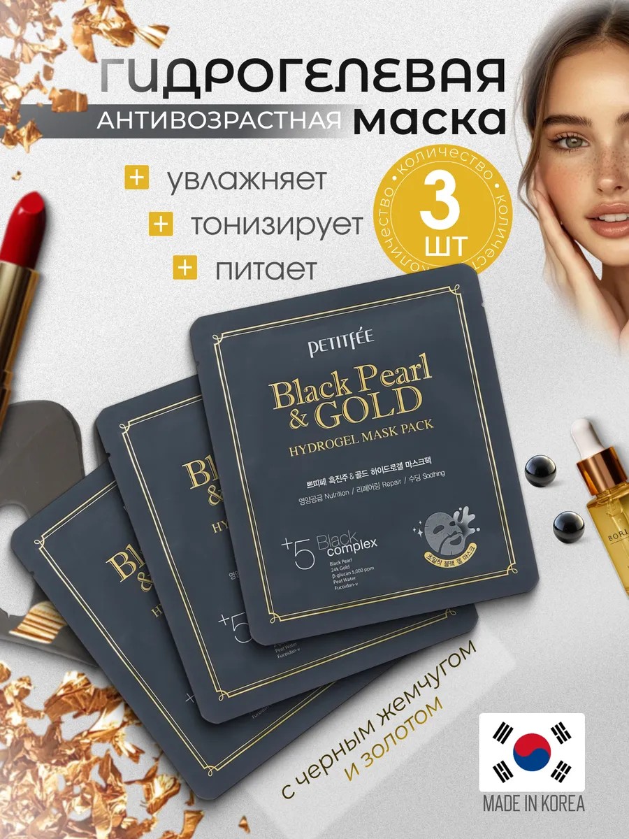 | Комплектация | Petitfee Black Pearl and Gold Hydrogel Mask 3 шт. |