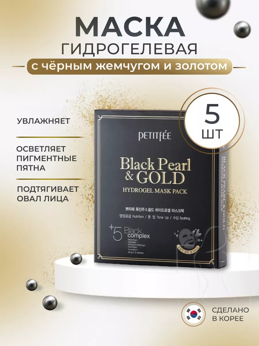 Гидрогелевая маска с чёрным жемчугом и золотом, 5 шт, Корея