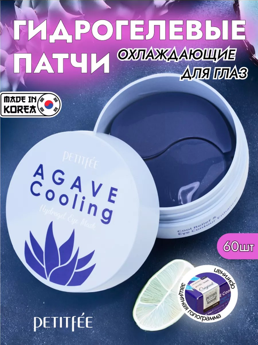 Hydrogel patches for puffiness and bags under the eyes with caffeine are ideal for an anti-aging lifting effect and facial skin care. PETITFEE Agave Cooling Hydrogel Eye Mask, 60-piece set. Caffeine has a lymphatic drainage and decongestant effect. Agave extract perfectly cools and reduces puffiness. Blueberry extract has antioxidant properties and reduces skin sensitivity. Spirulina deeply moisturizes, saturates the epidermis with beneficial microelements and quickly soothes, smoothes wrinkles, and restores skin structure. This natural hydrogel is a premium component made from konjac plant material. It gradually dissolves in response to body temperature and penetrates the deep layers of the dermis, eliminating expression lines and leaving skin healthier and more elastic. Its unique moisturizing and cooling properties have revolutionized the world of skincare and made it one of the most sought-after ingredients. This product is infused with a concentrated serum that reacts to body temperature with the hydrogel, enhancing its rejuvenating effect. These Korean rejuvenating eye patches provide a comprehensive effect on the delicate skin of the eyelids and help reduce wrinkles and dark circles. The serum contains a seaweed complex that effectively soothes irritation and redness, evening out skin tone and giving your eyes a rested, radiant appearance. Eggplant extract effectively combats signs of fatigue, leaving your eyes looking fresh and rested. Directions: Remove the patches with a spatula and place the pointed end on the bridge of your nose, ensuring a tight fit. Remove after 20-30 minutes. Increase the exposure time to 40 minutes for very dry skin, ideal for those aged 40, 50, and 60+. An ideal gift for women: mom, friend, girlfriend, or loved one for their birthday, New Year, March 8th, and Valentine's Day. Recommended for use in combination with the Petitfi series of Korean skincare products for face and body care.