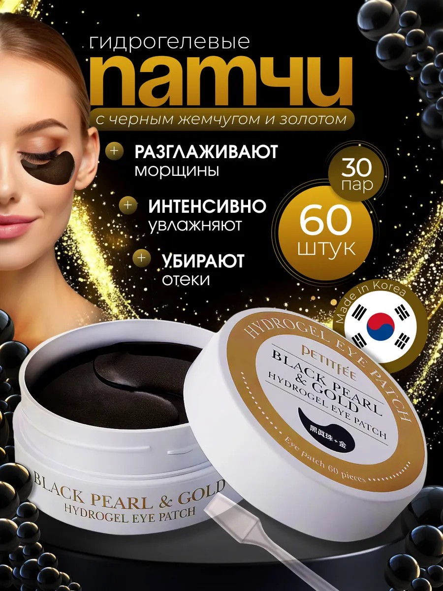 Petitfee Гидрогелевые патчи для глаз с черным жемчугом и золотом