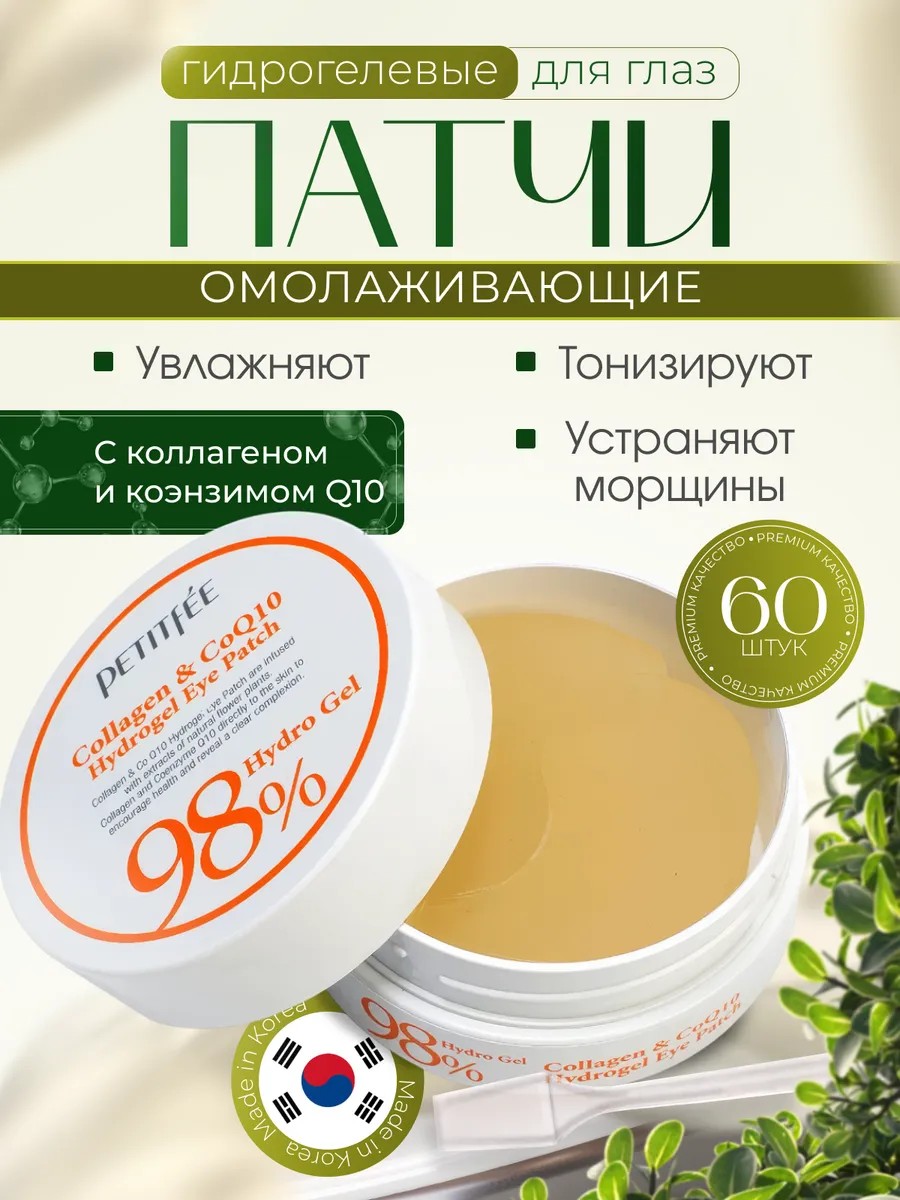 Petitfee Гидрогелевые патчи с коллагеном и коэнзимом Q10, 60 шт
