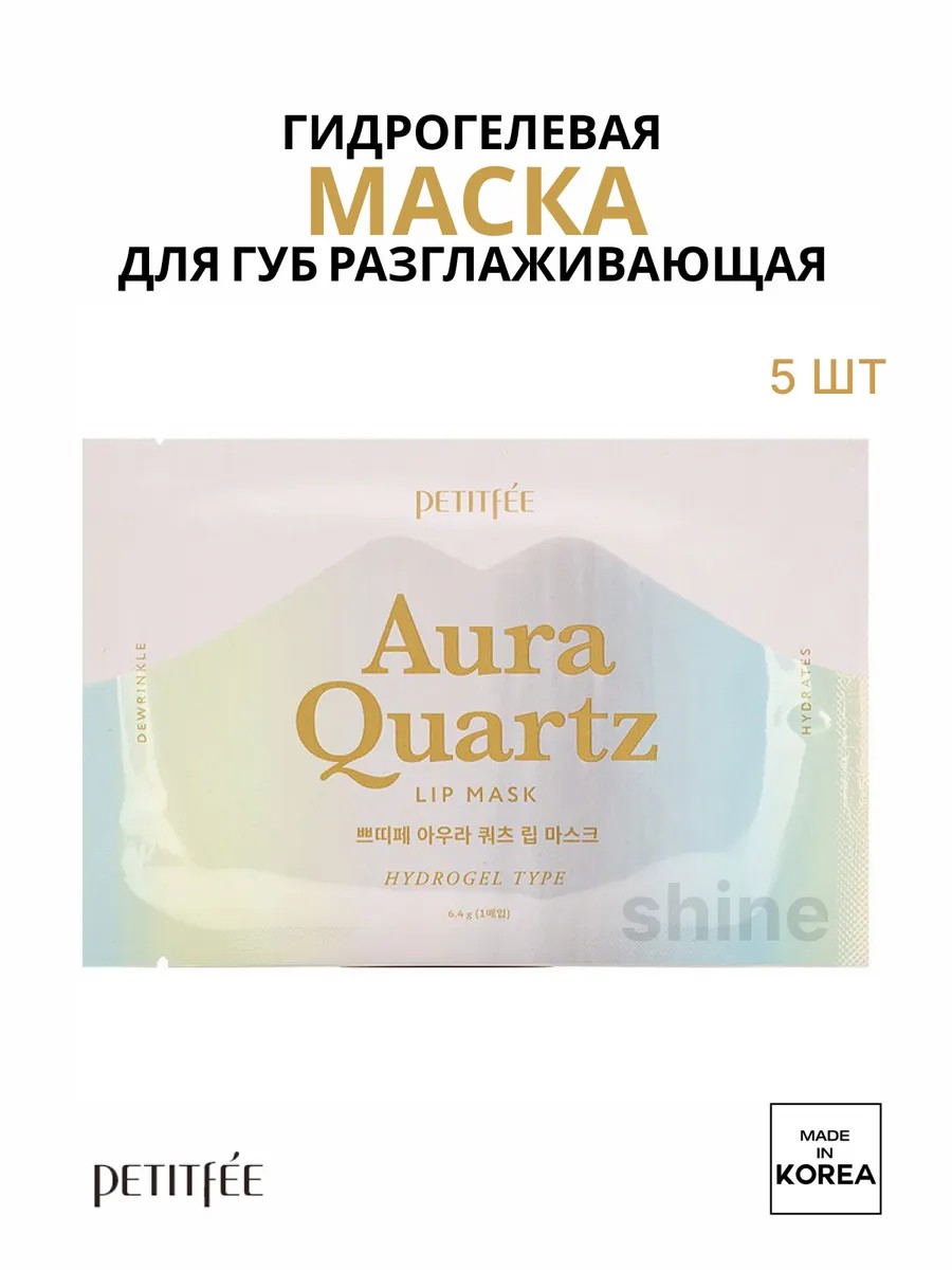 Petitfee Гидрогелевая маска для губ с жемчужной пудрой Aura Quartz