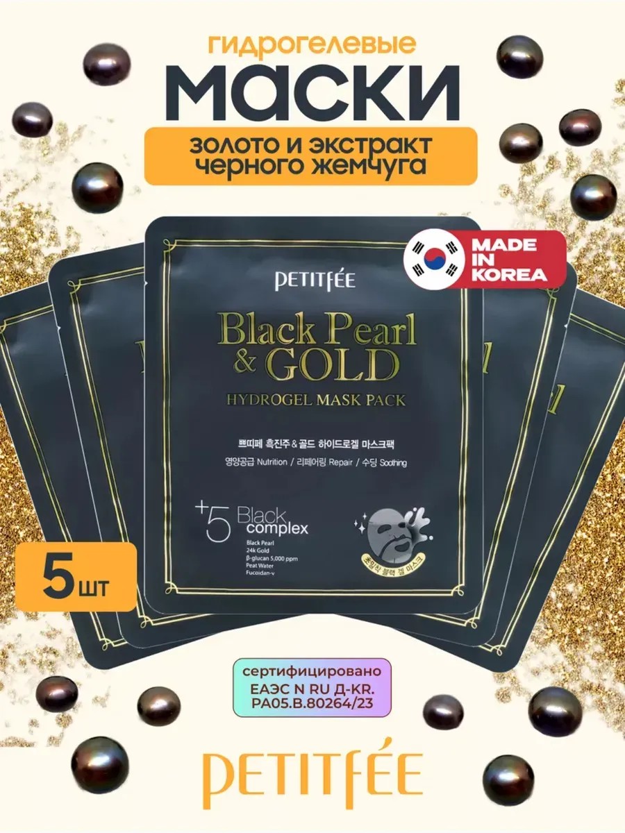 Petitfee Корейские гидрогелевые маски для лица с золотом и жемчугом