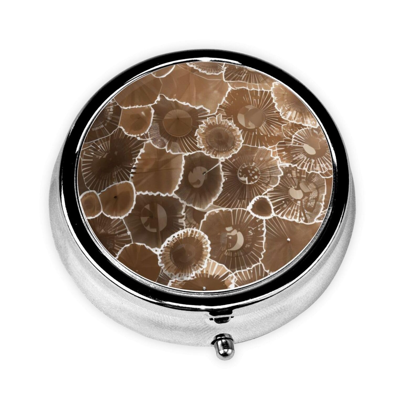 Wide range of applicable scenarios: suitable for use in various occasions such as home, office, and travel, providing you with convenient drug storage solutions. Multi-grid plastic inserts: The medicine box is designed with 3 plastic inserts inside, which can separate and store different types of pills, making them more organized and convenient to use. Convenient opening button design: The medicine box button design is easy to open, convenient and fast, and simple to operate, allowing you to easily access the medicine. Environmentally friendly metal material: Made of environmentally friendly metal iron plating material, it is durable, safe and reliable, and protects medicines from damage. Petoskey Stone Portable mini design: round mini pill box, measuring 2.0x2.0x0.7 inches, lightweight and portable, suitable for carrying in pockets and purses, providing you with urgently needed medicines anytime and anywhere.