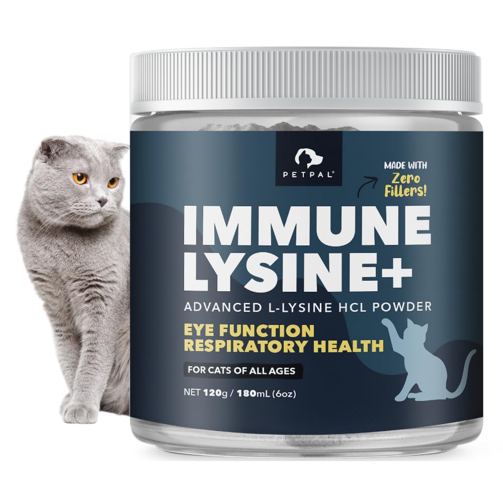 PETPAL - L-Lysine Immune and Respiratory Support Supplement for Cats | Pure Bioactive Lysine + | Eye Function, Runny Nose, Sneezing, Feline Conditions | Easy to Serve | Cats of All Ages | 4oz / 120g WT