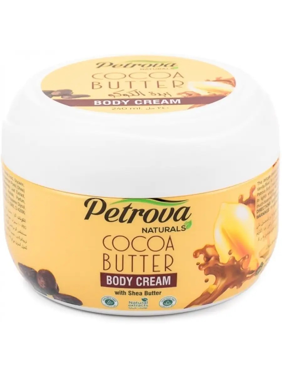 PETROVA CHOCOLATE PLEASURE Body Cream - COCOA & VANILLA, 240 ml, 1 pc: This cream butter with shea butter, cocoa, vanilla, and aloe extract instantly moisturizes and nourishes your skin, enriching it with vitamins A and E, leaving it youthful and supple. Silicone- and paraben-free. Petrova is a brand of cosmetic and hygiene products for beauty, women's health, and household needs. This line of exquisite natural cosmetics for skin and hair is distinguished by a delicate aroma and eco-friendly composition. The products are paraben- and silicone-free and do not cause allergic reactions on the skin.