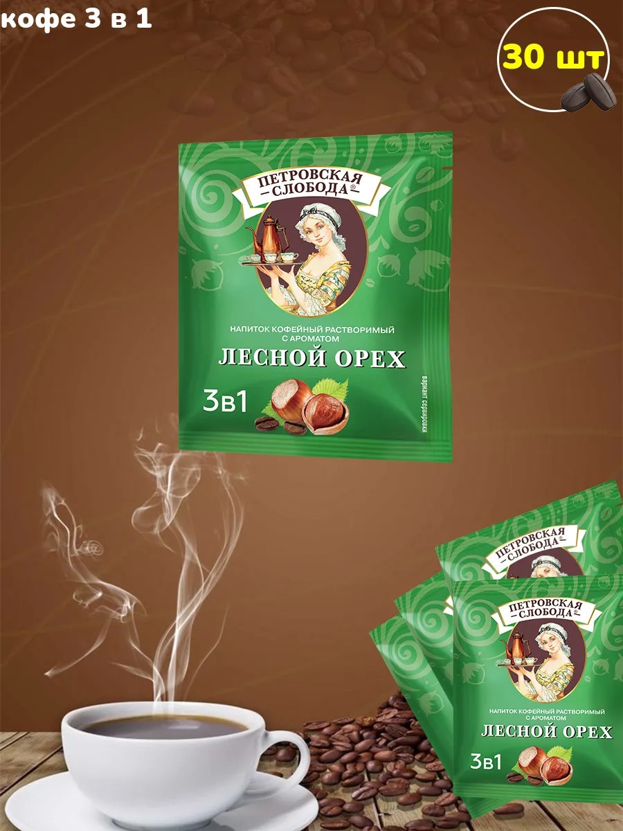 Петровская слобода Кофе 3 в 1 лесной орех, 30 пакетиков