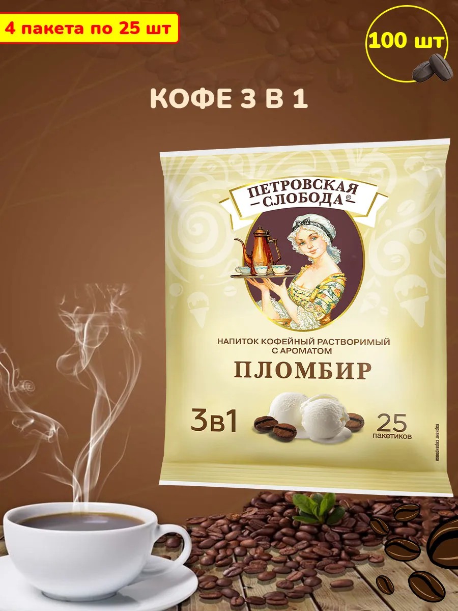Растворимый кофе Петровская слобода с ароматом пломбира 100 шт (4 пакета по 25 шт).