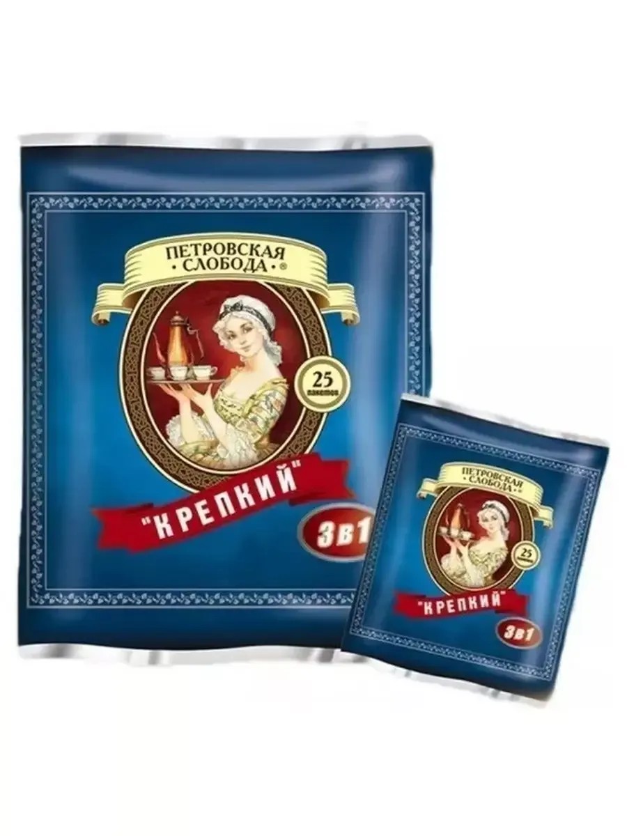 Petrovskaya Sloboda, 3-in-1 Strong Coffee, 20 g x 25 packs. Petrovskaya Sloboda Strong coffee drink is a strong and invigorating drink with a rich coffee flavor. It will provide a long-lasting mood boost and energy boost.