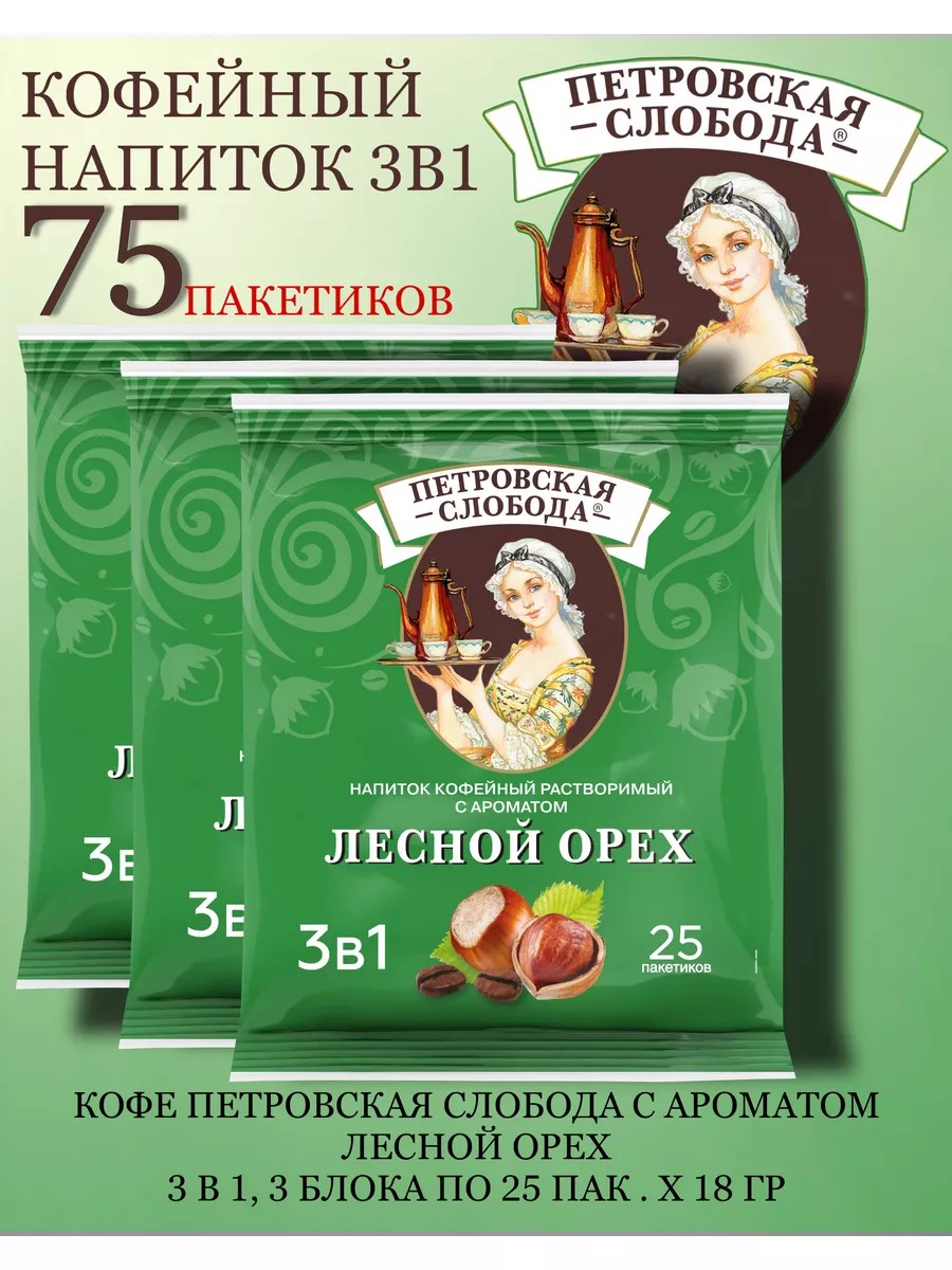 Петровская слобода Кофейный напиток 3в1 Лесной орех 3 блока по 75 пак х 18 гр