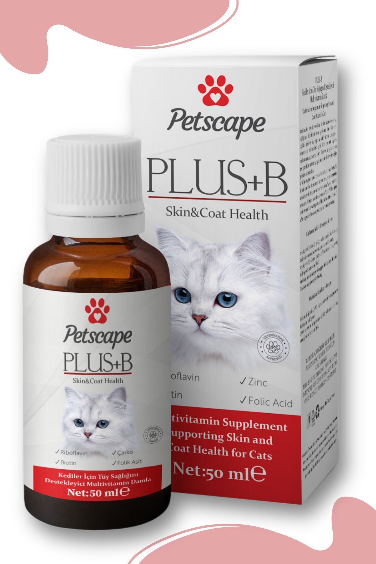 Petscape Plus+B Multivitamin Drops 50ml (Coat Health Drops for Cats)