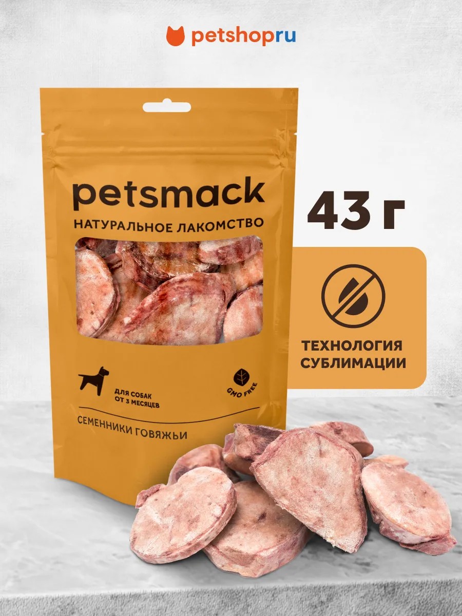 Мы взяли натуральные говяжьи семенники от проверенного поставщика, бережно нарезали их на кусочки, высушили по особой технологии и аккуратно упаковали.