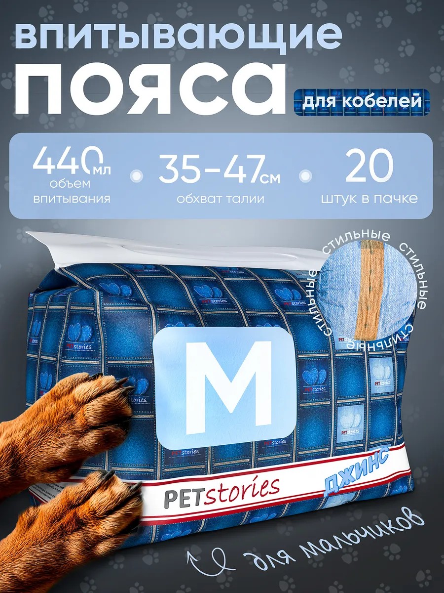 PETstories Джинсовые одноразовые впитывающие пояса для кобелей, M