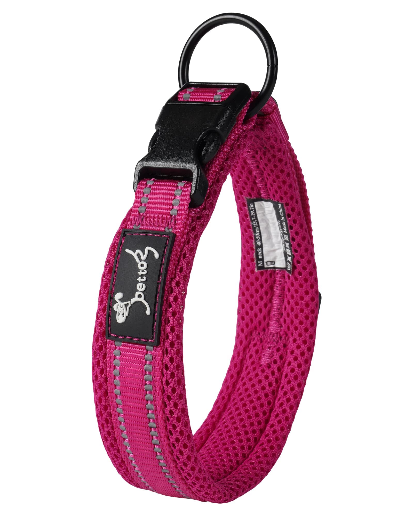 Dog collar can connect the leash- The O-shaped ring made of zinclegation on the collar enables hanging or connecting the leash, is very durable and strong.Reflective dog collar design- Equipped with reflective material, the dog can be easily discovered at night.Ensure security.Several sizes!- Pettom dog collar, available in a variety of sizes, suitable for puppies, small, medium, large dogs, cats or other pets.Various collars for boys, male pets or girls, female pets.Breakaway design dog collar- Quick backup, simply put on and take off.Adjustable length, a little elastic, comfortable to wear.The Duraflex buckle is light, but has a strong stress ability that promotes the expandable ability of the leash.Nylon padded soft mesh- With padded materials and ergonomic design, this dog collar is convenient and does not injure pets.Breathable in summer and for all seasons (please measure before buying).Hundehalsband kann die Leine verbinden- Der O-förmige Ring aus Zinklegierung am Halsband ermöglicht das Aufhängen oder Verbinden der Leine, ist sehr langlebig und stark. Reflektierendes Hundehalsband Design- Ausgestattet mit reflektierendem Material, kann der Hund nachts leicht entdeckt werden. Sorgen Sie für Sicherheit. Mehrere Größen!- PETTOM Hundehalsband, erhältlich in einer Vielzahl von Größen, geeignet für Welpen, kleine, mittlere, große Hunde, Katzen oder andere Haustiere. Verschiedene Halsbänder für Jungen, männliche Haustiere oder Mädchen, weibliche Haustiere. Breakaway Design Hundehalsband- Schnellsicherung, einfach an- und auszuziehen. Einstellbare Länge, ein wenig elastisch, angenehm zu tragen. Die Duraflex-Schnalle ist leicht, aber hat eine starke Belastungsfähigkeit, die die erweiterbare Fähigkeit der Leine fördert. Nylon gepolstertes weiches Mesh- Mit gepolsterten Materialien und ergonomischem Design ist dieses Hundehalsband bequem und verletzt Haustiere nicht. Atmungsaktiv im Sommer und für alle Jahreszeiten geeignet (Bitte vor dem Kauf messen).PETTOM Hundehalsband Verstellbare Nylon Hunde Halsband Atmungsaktives Reflektierend Halsband (Rose XS) XS Rosa