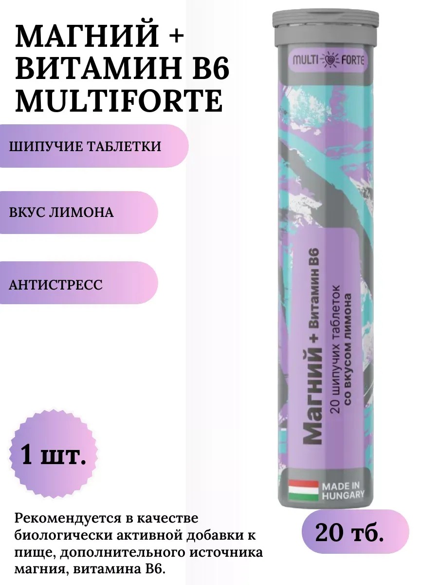Indications for use Magnesium + Vitamin B6 MultiForte, effervescent tablets (lemon), 20 pcs.