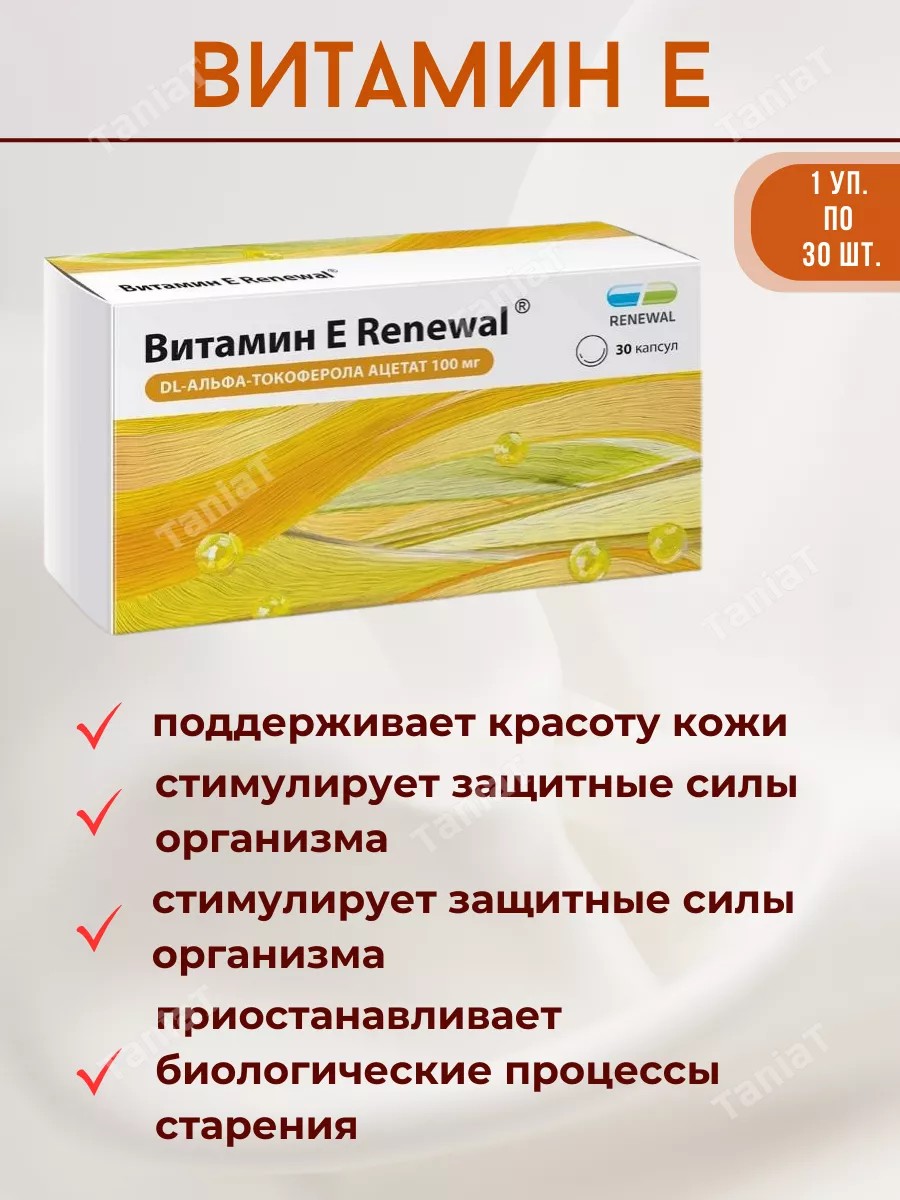 Комплектация"ВИТАМИН Е RENEWAL N30 КАПС ПО 330МГ "; 1уп