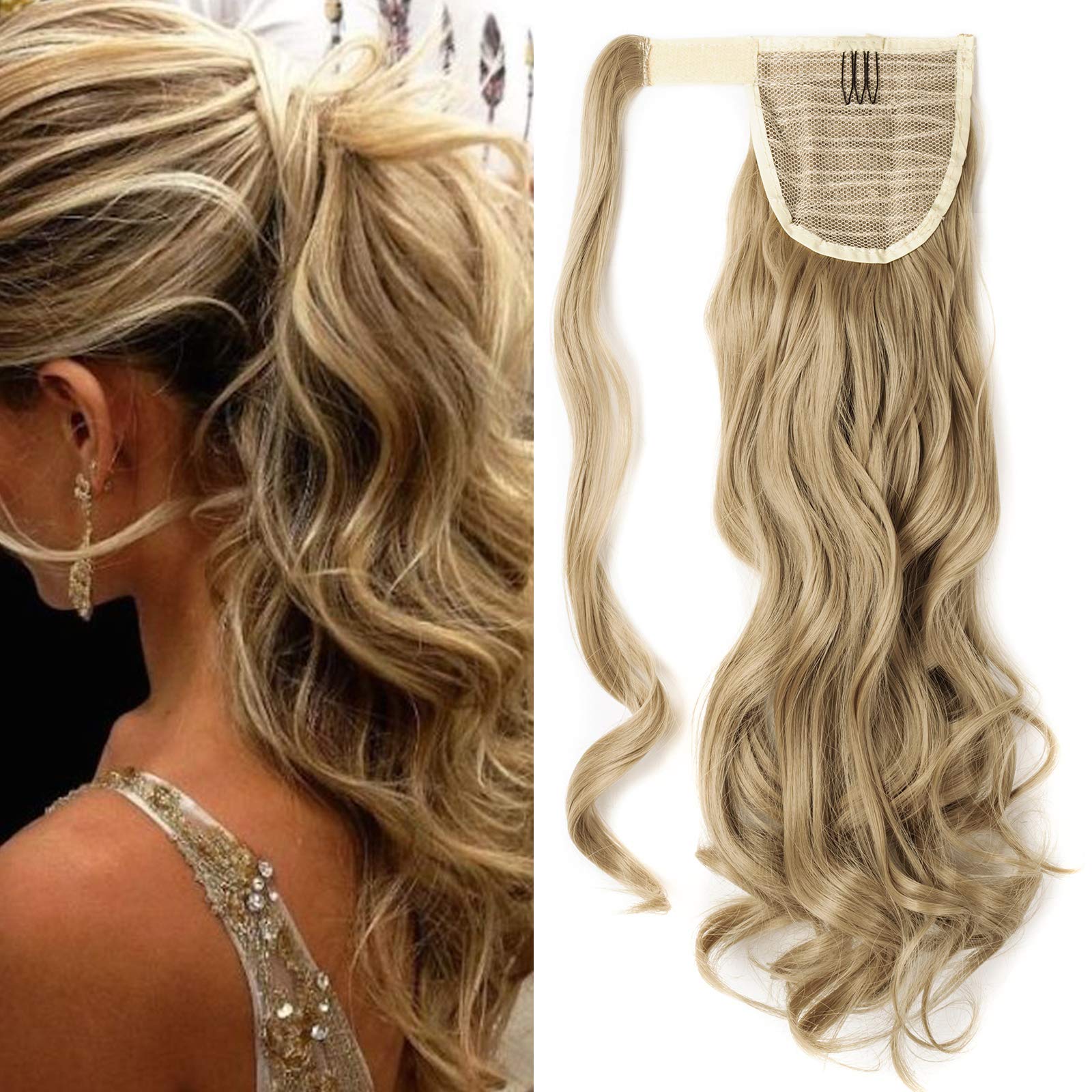 Pferdeschwanz Haarteil Zopf Clip in Ponytail Haarverlängerung Synthetik Haare Extension Hair Piece Wrap on für Frauen 43 cm Wavy-Mittelblond