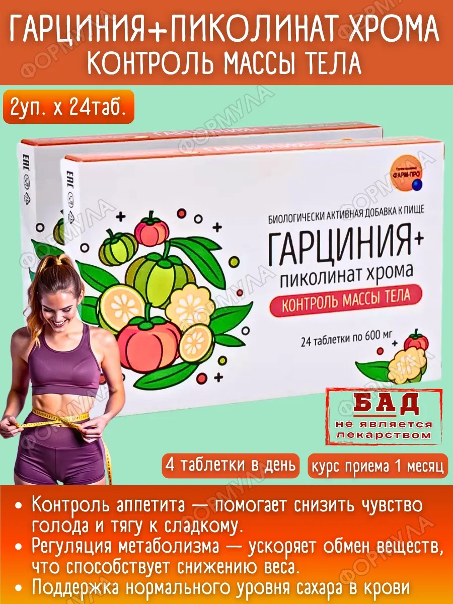 | Комплектация | Гарциния+пиколинат хрома контроль массы тела n24 табл по 600мг*2шт |
