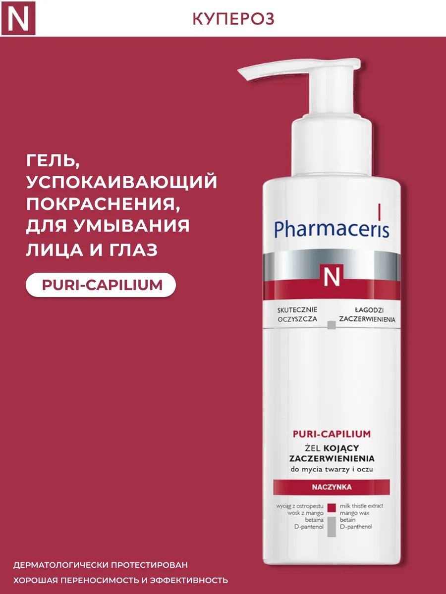 N Гель успокаивающий покраснения Puri-Capilium, 190 мл